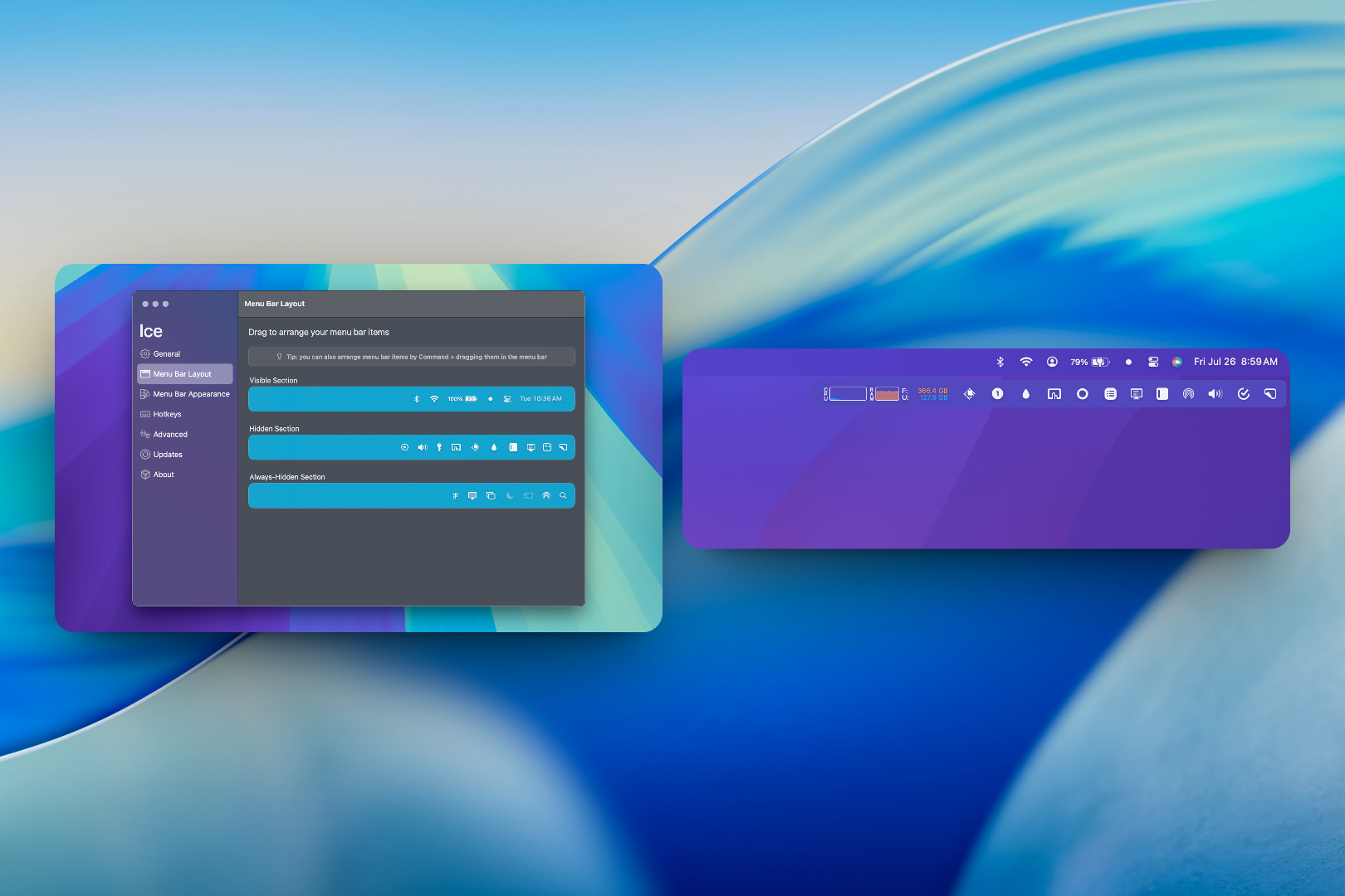 What makes it genuinely useful is smart refresh on display changes. When you dock or undock your MacBook, when you switch external monitors, the menu bar rearranges itself intelligently without breaking. And if you were already using Ice? Full import support means your custom layout transfers seamlessly — no rebuilding from scratch.